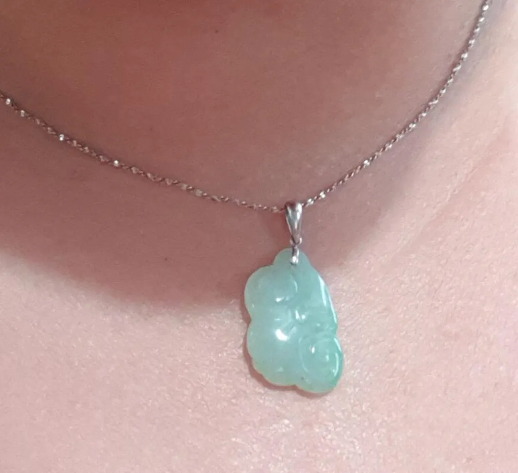 Artfully crafted from 18K white gold, this pendant embodies a perfect blend of durability and luxury. The metal seamlessly complements the main attraction - the jade itself. The jadeite jade features a captivating white color, infused with a unique green pattern. This intricate design within the jade adds a touch of mystique, making each pendant one-of-a-kind.