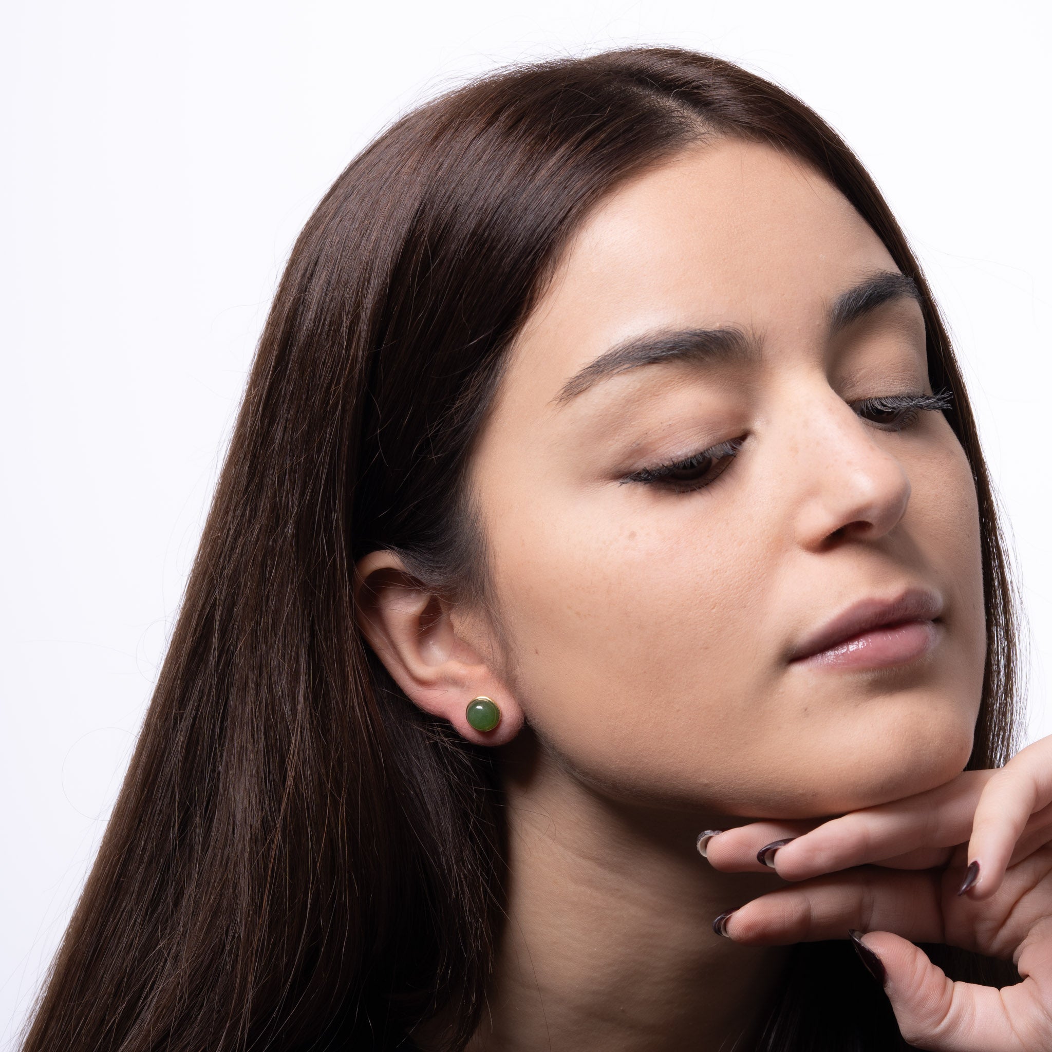 The Jade Halo Stud Earrings feature polished round green nephrite jade cabochons framed in a smooth bezel setting—simple, elegant, and timeless. Available in either solid 925 sterling silver or 18K gold vermeil (a thick layer of gold over sterling silver), these studs are perfect for everyday wear with just the right touch of natural beauty.